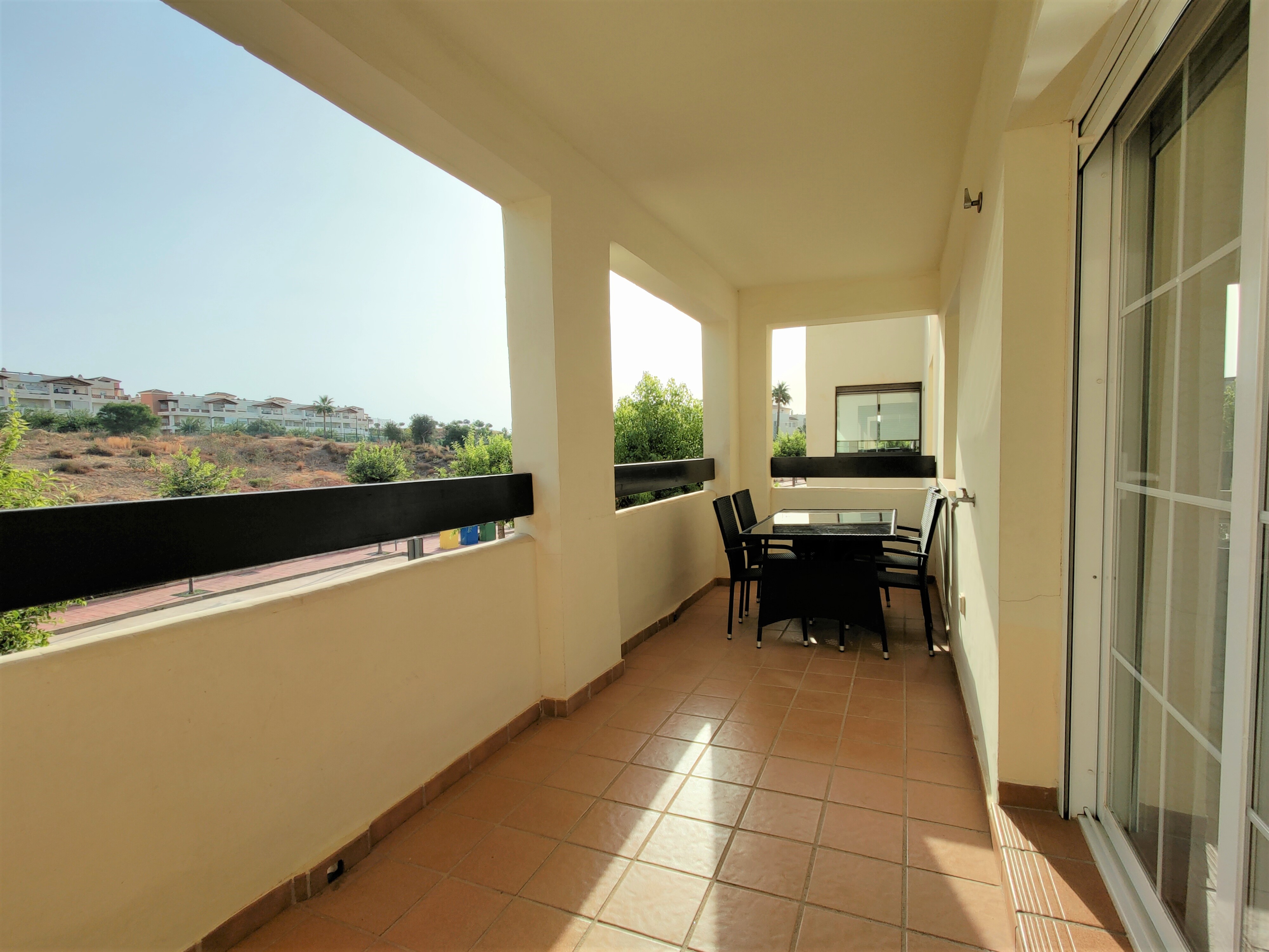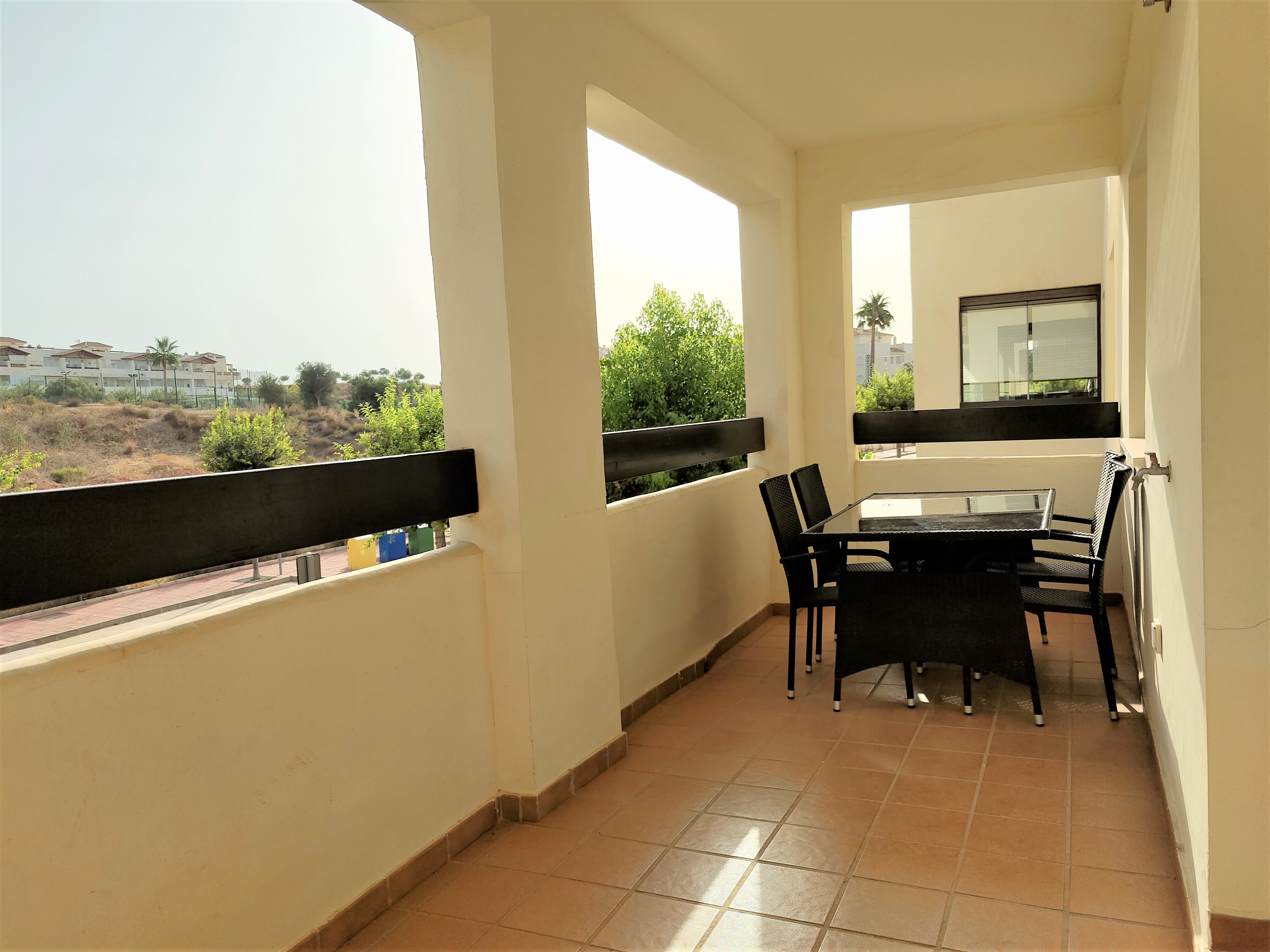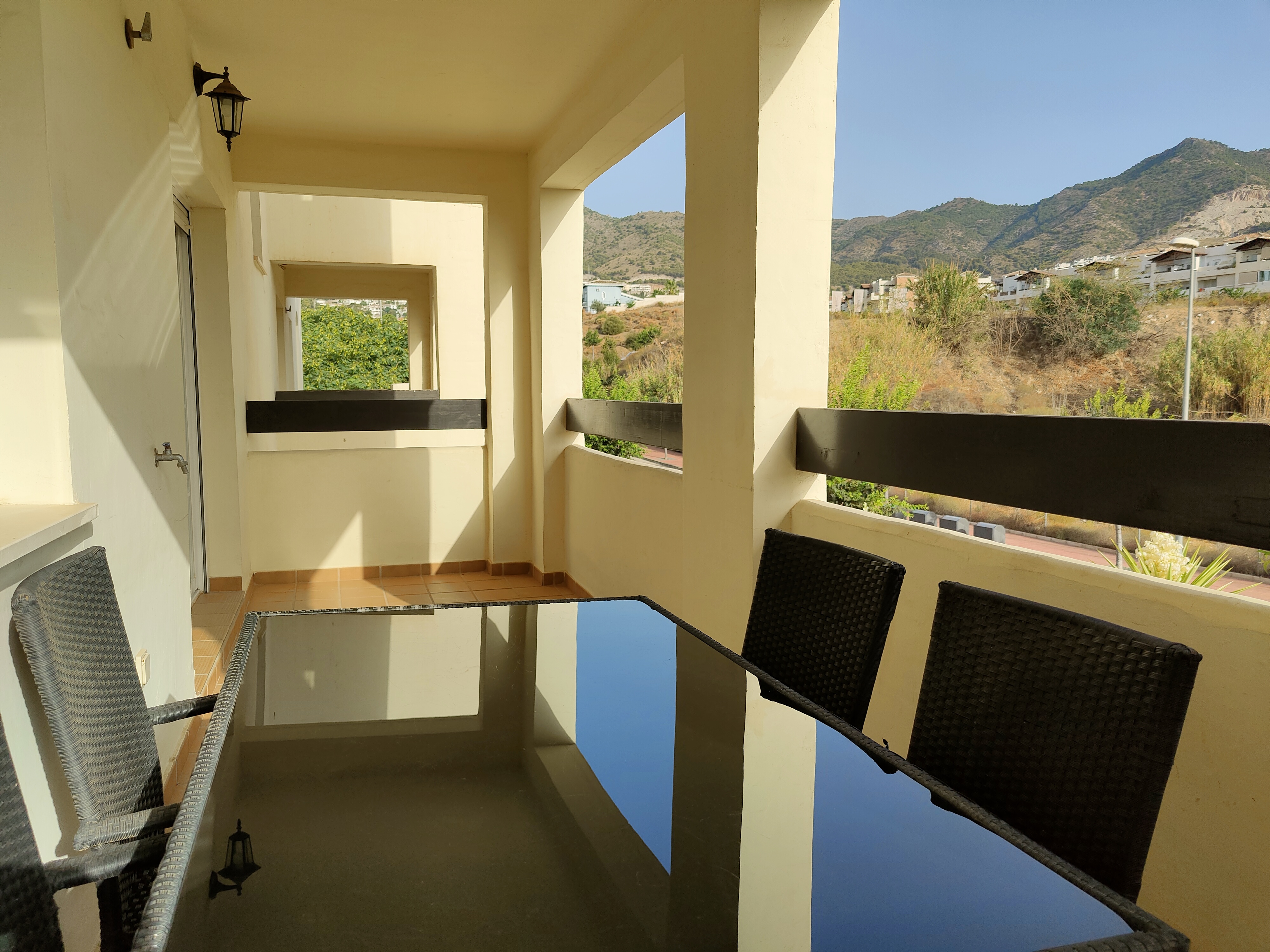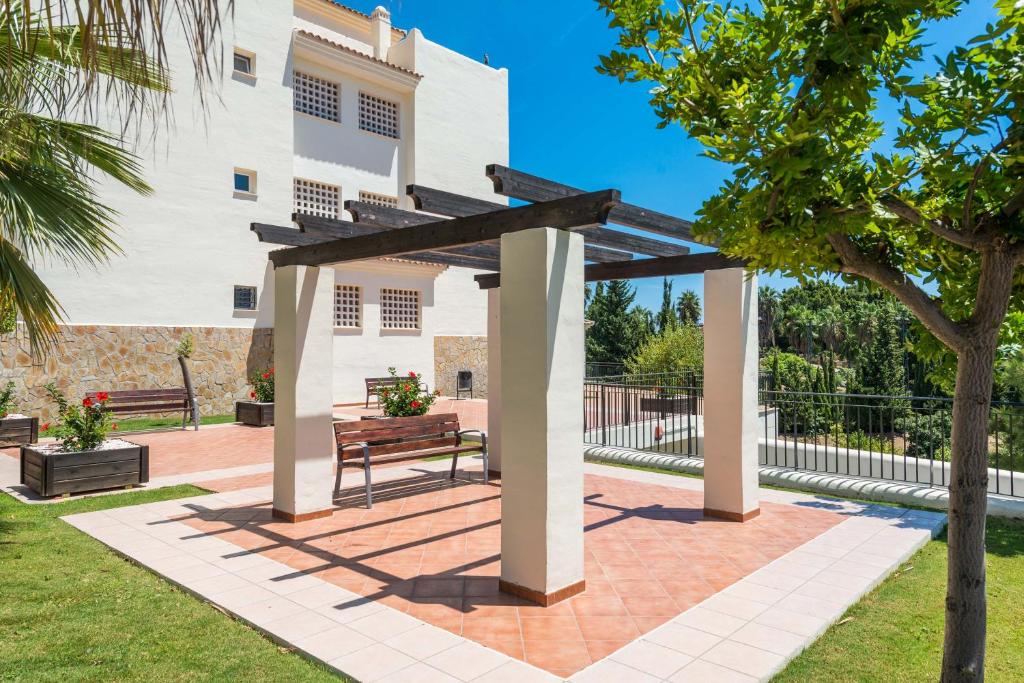 Imagina relajarte en la amplia terraza cubierta, disfrutando de las vistas a la comunidad que cuenta con una espectacular piscina y un jardín tropical. Además, tendrás acceso a un club social con bar-restaurante y diversas actividades de ocio y deporte, incluyendo gimnasio, paddle, tenis y golf. La zona residencial es tranquila y está bien comunicada, con supermercados a solo 200 metros y hospitales cercanos como Xánit.