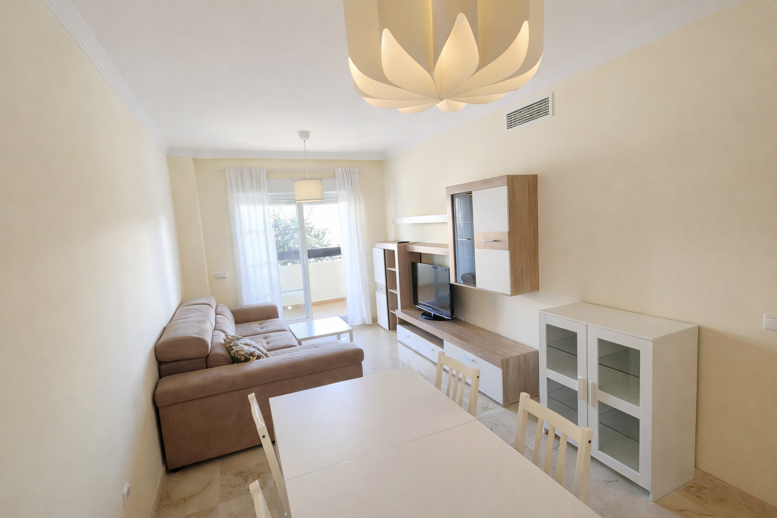 ¡Descubre tu nuevo hogar en la exclusiva Urbanización Arenal Golf! Este fantástico piso de 90 m², disponible para alquiler a largo plazo a partir de mediados de mayo, ofrece un amplio salón con muebles modernos que invitan a disfrutar de momentos inolvidables. La cocina independiente está totalmente equipada, perfecta para los amantes de la gastronomía. Con 2 dormitorios y 2 baños (uno en suite), este espacio es ideal para una pareja o una pequeña familia.